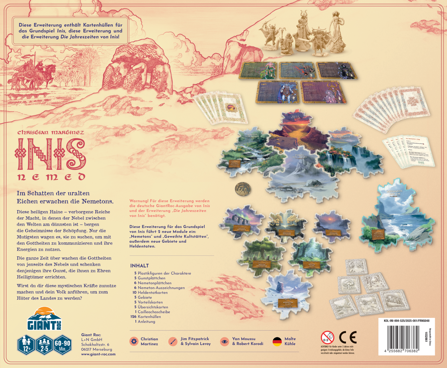 Inis - Nemed ist die neue Erweiterung des taktischen Kennerspiels Inis mit Area-Control- und Kartendraftingelemeten für 2-4 keltische Häuptlinge (mit der Jahreszeiten von Inis-Erweiterung sogar zu fünft) ab 12 Jahren von dem Spieleautor Christian Martinez. Die Illustrationen zeichnet Jim FitzPatrick.