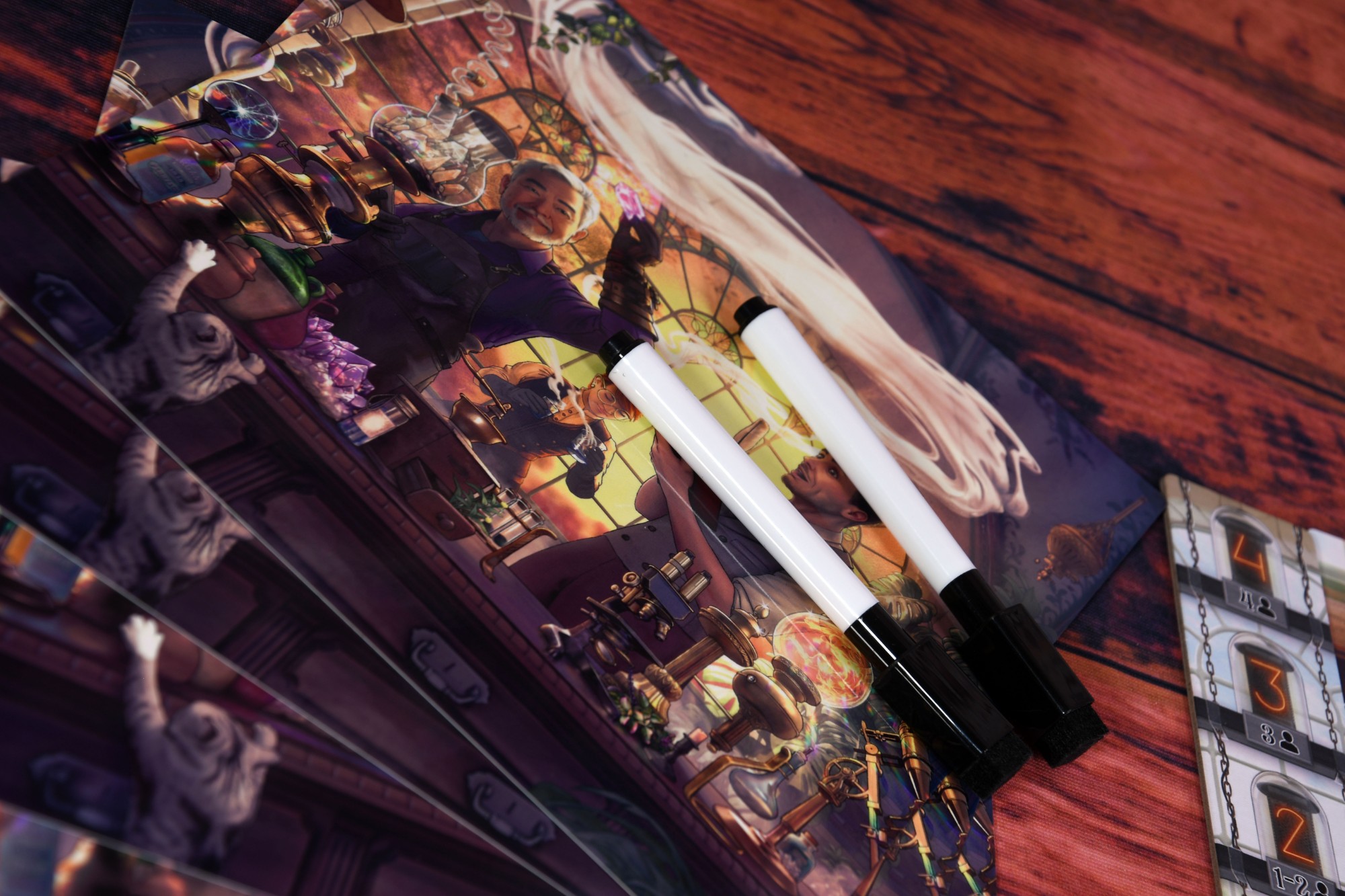 Ihr schöpft dabei alle aus einem gemeinsamen Pool an Experimenten, Artefakten und Würfeln, arbeitet aber selbständig, um den geschätzten Meister zu beeindrucken. Das Spiel dauert fünf Runden und endet mit einer Schlusswertung. Wer von euch dann die meisten Siegpunkte hat, gewinnt.