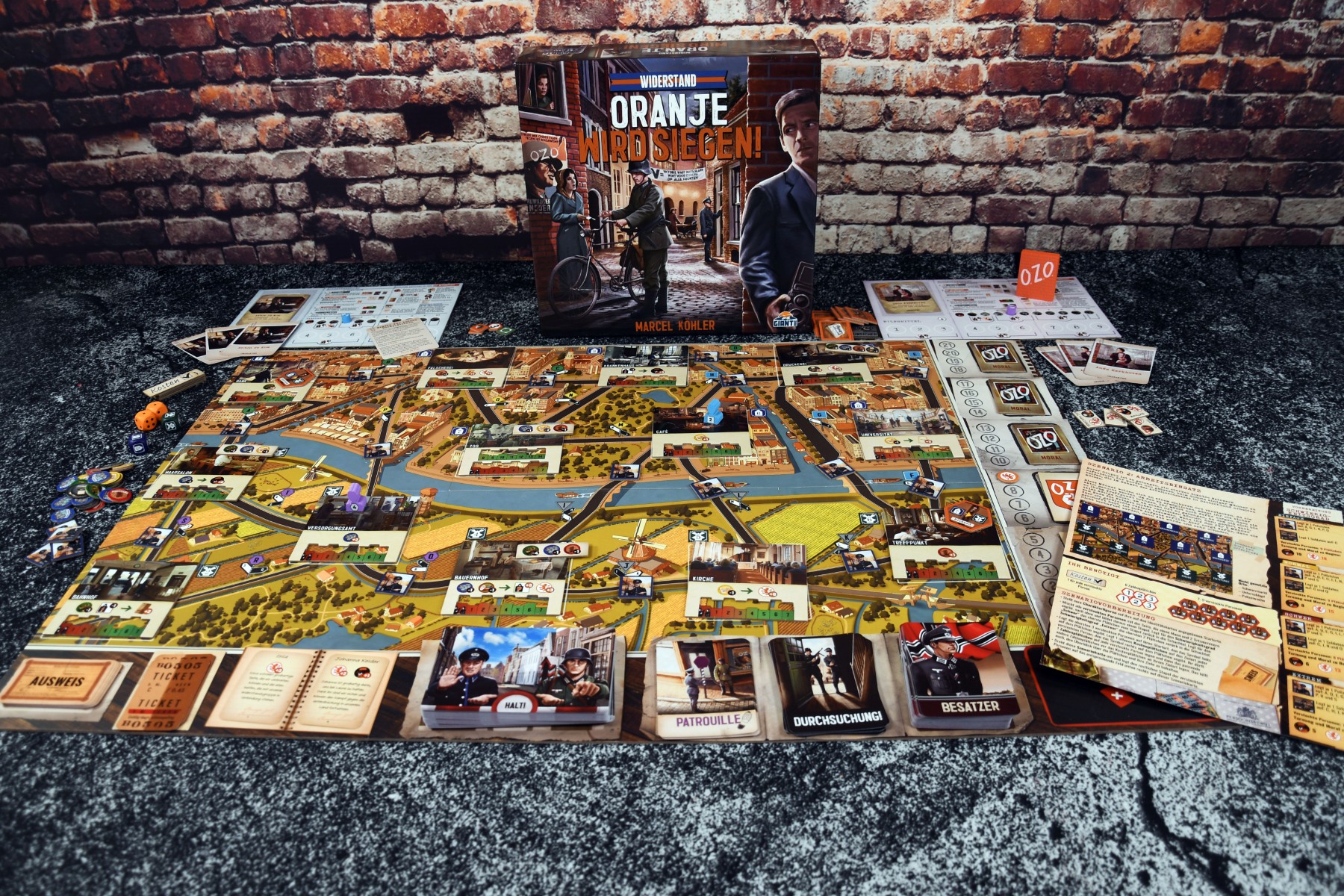 Widerstand: Oranje wird siegen! ist ein kooperatives Spiel, bei dem ihr die Rollen echter Mitglieder des niederländischen Widerstands in den letzten Jahren des Zweiten Weltkriegs übernehmt. Das Spiel ist szenariobasiert, wobei sich jedes Szenario auf eine der Aufgaben konzentriert, an denen der Widerstand arbeitete.